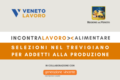 Il Centro per l'impiego di Montebelluna (TV) organizza un recruiting in collaborazione con il CPI di Castelfranco Veneto e l'agenzia Generazione Vincente per selezionare addetti alla produzione da impiegare in alcune aziende del settore caseario del territorio [...]ÜberIncontraLavoro Alimentare Treviso