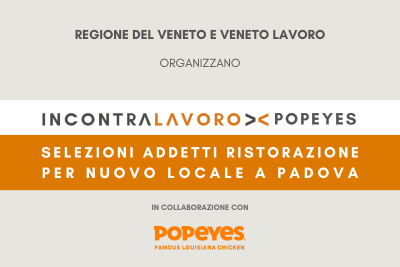 Il Centro per l'impiego di Padova seleziona operatori di fast food per un ristorante di nuova apertura a Padova a insegna Popeyes [...]