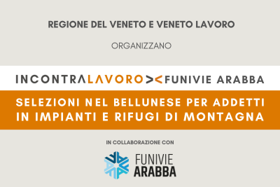 Il Centro per l'impiego di Agordo in collaborazione con i CPI dell'Ambito di Belluno seleziona addetti per la stagione turistica invernale da impiegare nei rifugi e impianti di montagna dell'agordino gestiti da Funivie Arabba [...]