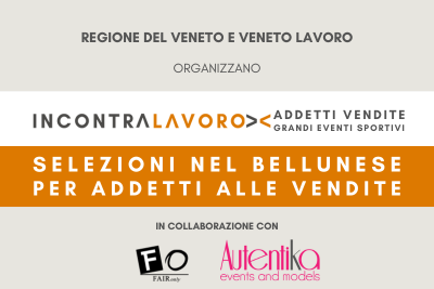 I Centri per l'impiego dell'Ambito di Belluno organizzano un recruiting in collaborazione con FairOnly e Autentika per selezionare addetti alle vendite da impiegare nei grandi eventi sportivi [...]